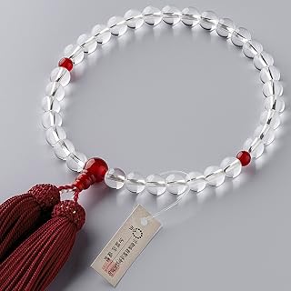 仏壇屋 滝田商店 京念珠 数珠 女性用 本水晶 瑪瑙(メノウ)仕立 8mm玉 正絹頭付房 数珠袋付 すべての宗派で使える 証明書付