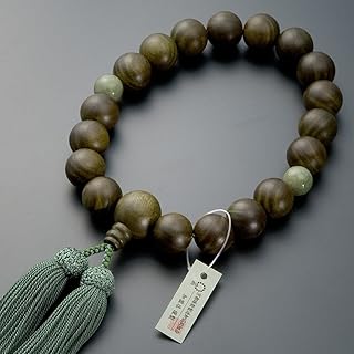 仏壇屋 滝田商店 京念珠 数珠 男性用 緑檀(生命樹) 2天独山玉 18玉 正絹頭付房 数珠袋付き すべての宗派で使える 証明書付