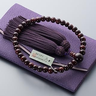 仏壇屋 滝田商店 数珠 女性用 紫檀 (艶あり) 8mm玉 正絹頭付房 数珠袋付き すべての宗派で使える 京念珠 証明書付