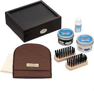 [M.モゥブレィ] シューケア 靴磨き キット 木箱入り メンズセット 靴クリーム ブラシ クリーナー 汚れ落とし クロス