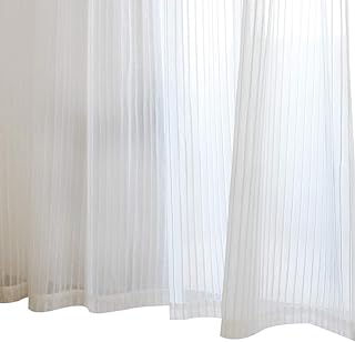 CITYINICITYレースカーテン 白い ファッション ストライプ UV 北欧 水洗い 洗濯可 幅100cm×丈200cm×2枚組 カーテンセット