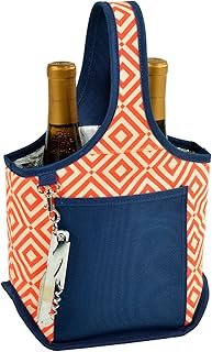 (Orange/Navy) - Picnic at Ascot Stylish 2 Bottle Wine Tote with Corkscrew - Orange/Navy