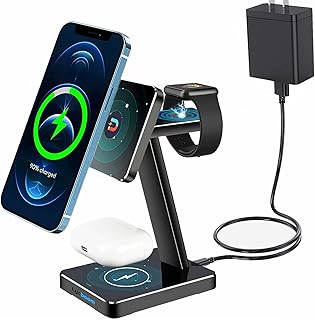 アルミニウム合金ワイヤレス充電スタンド 3イン1 ワイヤレス充電器 高速充電ドックステーション Airpods 2/Pro Apple Watch SE 6/5/4/3/iPhone 12シリーズ用 (アダプター付属)