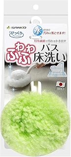 サンコー お風呂 スポンジ 浴槽 掃除 柄付き ブラシ ふわふわバス床洗い びっくりフレッシュ グリーン 日本製 BI-17