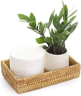 KOLSTRAW バスルーム バニティ トレイ ラタン ゲストタオル ナプキンホルダー (ハニーブラウン、1)