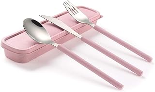ポータブルトラベル用品セット ケース付き 再利用可能なカトラリーセット ステンレススチールナイフスプーンとフォーク ケース付き ランチボックス 旅行 キャンプ用 (ピンク)