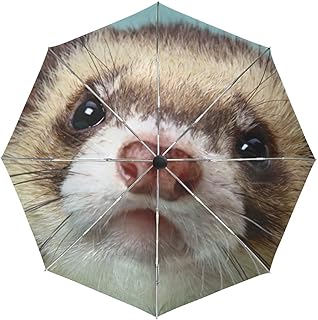 折りたたみ傘 自動開閉 レディース 軽量 晴雨兼用 かわいい フェレット 青 日傘 ワンタッチ UVカット 頑丈な8本骨 耐風 撥水 耐強風 グラスファイバー 収納ケース付 携帯用傘 黒い表地