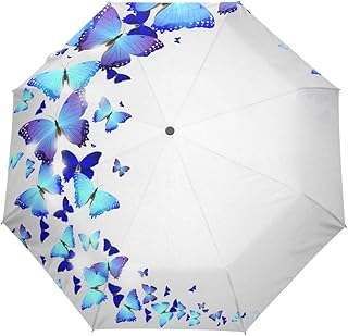 ユキオ(UKIO) 折り畳み傘 軽量 自動開閉 レディース 傘 梅雨対策 UVカット 日傘 蝶々 青い 頑丈な8本骨 耐強風 撥水 三つ折り 丈夫 収納ケース付 携帯用傘