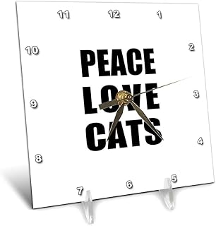 3dRose dc_184849_1 Peace Love and Cats-Things That Make Me Happy-Funny ユーモアのあるデスク時計 15.24cm×15.24cm