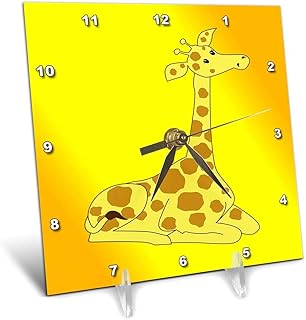 3dRose オレンジイエローの背景に休むキリンのプリント - デスククロック、15.24cm x 15.24cm (dc_204374_1)
