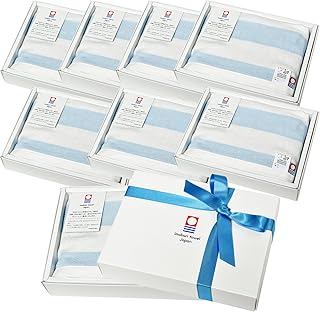 ブルーム 今治タオル 認定 グルービーボーダー ガーゼ フェイスタオル (8個, ブルー) [G] 日本製 引越し 挨拶 粗品 ギフトボックス入り タオルギフトセット
