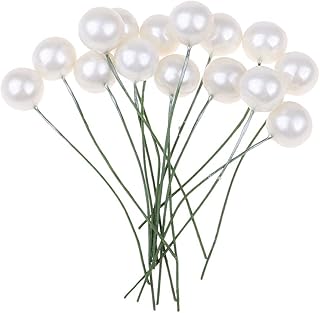 Hellery 50ピース/個の色造花インラウンドヘッドフォームチェリーベリー白と黄色に装飾センターピースフェイクブーケボウ - 白