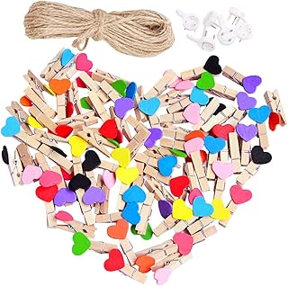 UUYYEO 50ピース ミニ カラフル 木製 洗濯バサミ 装飾 接木クリップ 写真吊り下げクリップ 紐と釘付き