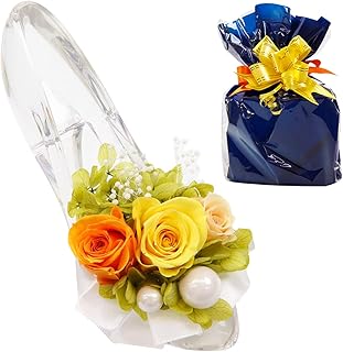 プリザーブドフラワー ギフト バラ 三輪 ガラスの靴 ギフト 誕生日 プレゼント 花 シンデレラ フラワーアレンジメント 結婚祝い 女性 お誕生日 お祝い 開院祝い 枯れない プチ アレンジ アクリル製 通販 プレゼント イエロー