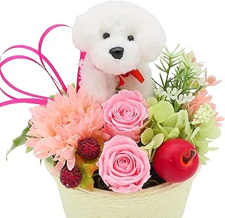 クリスマスプレゼント 誕生日プレゼント 花 女性 プレゼント プリザーブドフラワー ギフト フラワーアレンジメント トイプードル 犬 アレンジメント ぬいぐるみ