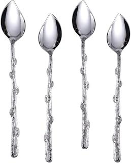 HISSF リーフデザイン 18/10 ステンレススチール コーヒースプーン ティースプーン 長い持ち手 かき混ぜスプーン 2個セット coffee spoon シルバー
