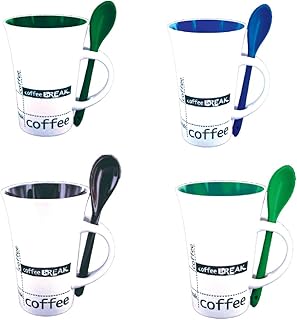 Coffee Mug and Spoon SetホワイトセラミックヒップCoffee Breakデザインとカラフルな内部コーヒーカップ14 oz (セットの4アソート色Included )