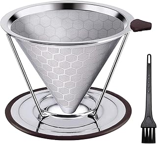 ステンレススチール コーヒードリッパー 再利用可能 コーヒーフィルター コーン ハニカムパターン 取り外し可能なカップスタンド付き クリーニングブラシ付き コーヒー愛好家 友人 家族へのギフト