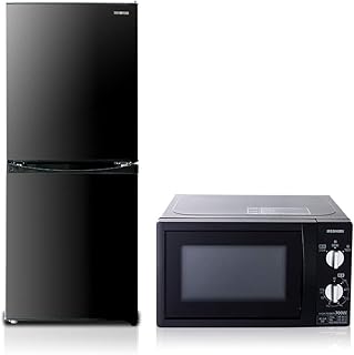 【2点セット買い】アイリスオーヤマ 冷蔵庫142L + 電子レンジ単機能東日本用 ブラック