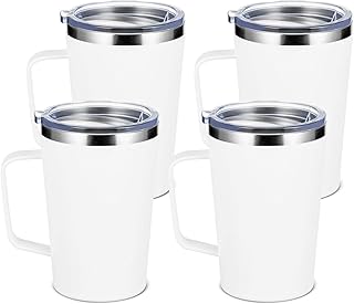 TUMZAK 16オンス/4個パック ステンレススチールコーヒーマグ ハンドル付き 二重壁断熱 蓋付き キャンプ用ティーフラスコカップ ホット&コールドドリンク用 ホワイト 4個パック