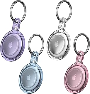 Apple AirTag Tracker用ケース 4個パック AirTagsケース 紛失防止キーチェーン付き 保護AirTagキーチェーンホルダーケースカバー 犬の鍵やバックパック用のファインダーアイテム 4個パック (4色)