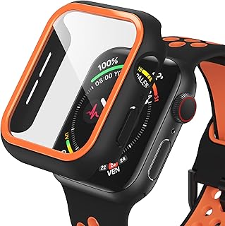 AVIDDA コンパチブル Apple Watch ケース 44mm アップルウォッチカバー Series SE/6/5/4 ガラスフィルム iWatchケース 2色ミックス ブラックとオレンジ