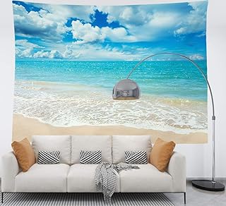 HIYOO ホーム壁掛け 自然アート ポリエステル生地 タペストリー 海のビーチオーシャンデザイン パーティー 寮の部屋 寝室 リビングルーム 80'W x 60'H (200cmx150cm)