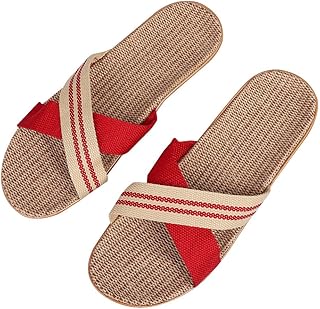 [SEDEX] ルームシューズ レディース 麻 メンズ スリッパ 超軽量 滑り止め 抗菌防臭 室内履き 蒸れない 女性 男性 静音 洗える 滑り止め 来客用 部屋用 サンダル 夏用 秋用 春用(女性-赤, 23.5-24.0cm)